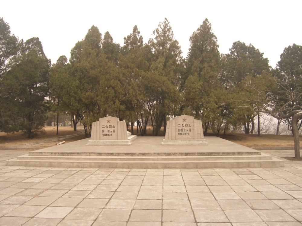 位于丰台区长辛店公园内,建筑占地面积约64.5平方米。1923年2月4日,京汉铁路工人为争取集会、结社的自由权利,在中国共产党的领导下举行了声势浩大的总同盟罢工运动。军阀吴佩孚为了逼迫工人复工,在帝国主义支持下,大肆屠杀罢工工友,酿成震惊中外的"二七"惨案。2月6日晚9时左右,时全盛、张国庆等领14旅2团3营、四郊游缉队及铁路警察闯入长辛店铁路工人家、逮捕共产党人吴汝明、史文彬、陈励懋、王永泰、李三、洪永福、杨锡贞、吴春西及吴祯、易顺等11人,押住14混成旅旅部。2月7日清晨,罗章龙、刘伯青乘车来到长辛店,得知史文彬等11人被捕的消息后,迅速组织起三、四千人的工人队伍,涌向长辛店火神庙,将警察署包围,与庙内的驻军和2个警察营形成对峙。示威工人首先派韩连金搭话,随即又派孙呈武,刘文武进内交涉。军队见群众队伍蜂拥而来,立即后退,举枪作射击状。不久,混成旅4团3营赶来,双方开始发生冲突。长辛店铁路工人葛树贵、吴祯、杨诗田、辛可红、刘宝善、刘川田、李玉、赵长润、高顺田等9人壮烈牺牲,29人负伤。王永福、刘炳波等20余人被捕,长辛店铁路工人罢工惨遭镇压。为了纪念烈士敢于斗争、不怕牺牲的革命精神,继承和发扬"二七"斗争的光荣传统,长辛店二七机车车辆工厂于1966年7月在长辛店公园内为葛树贵、吴祯二烈士修墓立碑。