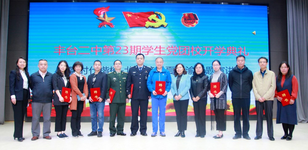 4月29日,丰台第二中学第23期学生党校开学。以主题为“青春心向党 建功新时代”的活动,纪念五四运动100周年。丰台区委党史办、北京市公安局丰台分局、驻区部队等单位400余人参加活动。